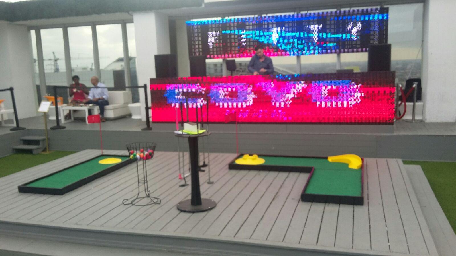 Friends And Family, All ages can enjoy this classic setup from Action Promos and Events. 9 Holes of Extreme fun, Wacky obstacles, groovy colored balls and putters makes our course a fan favorite!